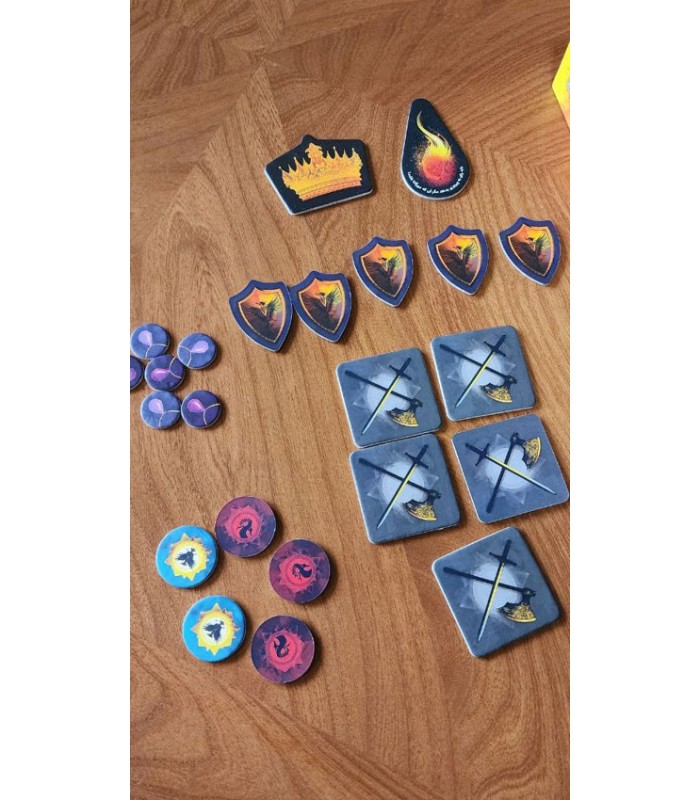در بازیهای 6 الی 10 نفره، کارتهای وفاداری را کنار صفحهی امتیازشماری گذاشته و سپس بسته به تعداد بازیکنان، توکنهای طلسم را جایگذاری کنید: