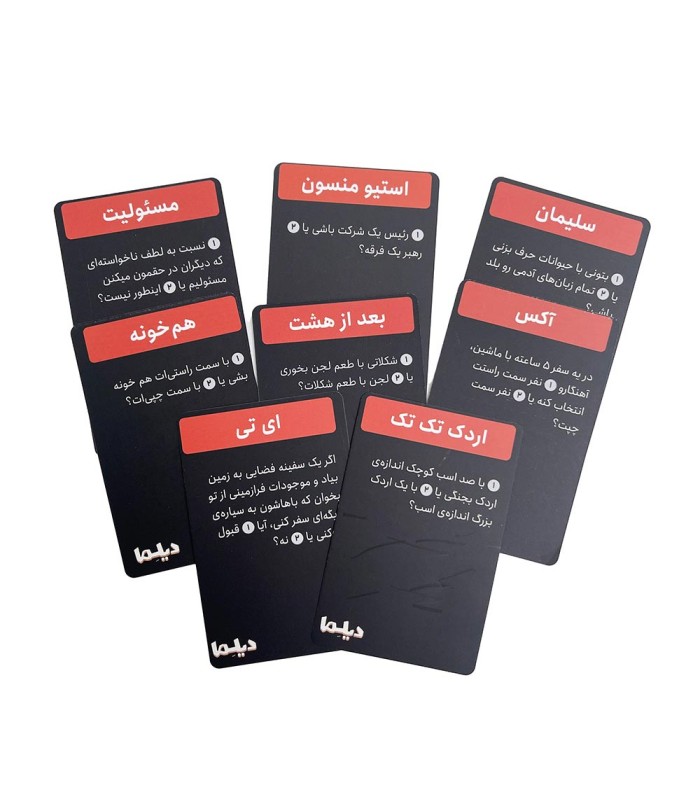 با نصب اپلیکیشن دیلما و وارد شدن به محیط کاربری اون، هر بازیکن میتونه ۶ سوال از بانک سوالات اپلیکیشن دریافت کنه. درست مثل گیمپلی اصلی، از بین این سوالها، ۳ سوال انتخاب کنین و بازی رو ادامه بدین.اگر میخواین از تنوع و امکانات کامل دیلما لذت ببرین، حتماً از اپلیکیشن استفاده کنین. این اپ هم برای بازیهای دورهمی و هم برای چالشهای شخصیتر گزینهای بینظیره!